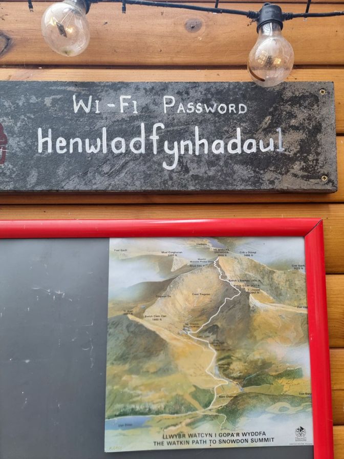 Near the parking lot is this blessed cafe which offers a warm finale for a hungry and thirsty hiker. They stow your hiking gear in a row of open lockers so that you can enjoy the cozy atmosphere. As a non-Welsh speaker, have fun entering the WIFI password which happens to be the name of the Welsh National Anthem. I savored a Purple Moose Lager from the Purple Moose Brewery in Porthmadog, Wales.
