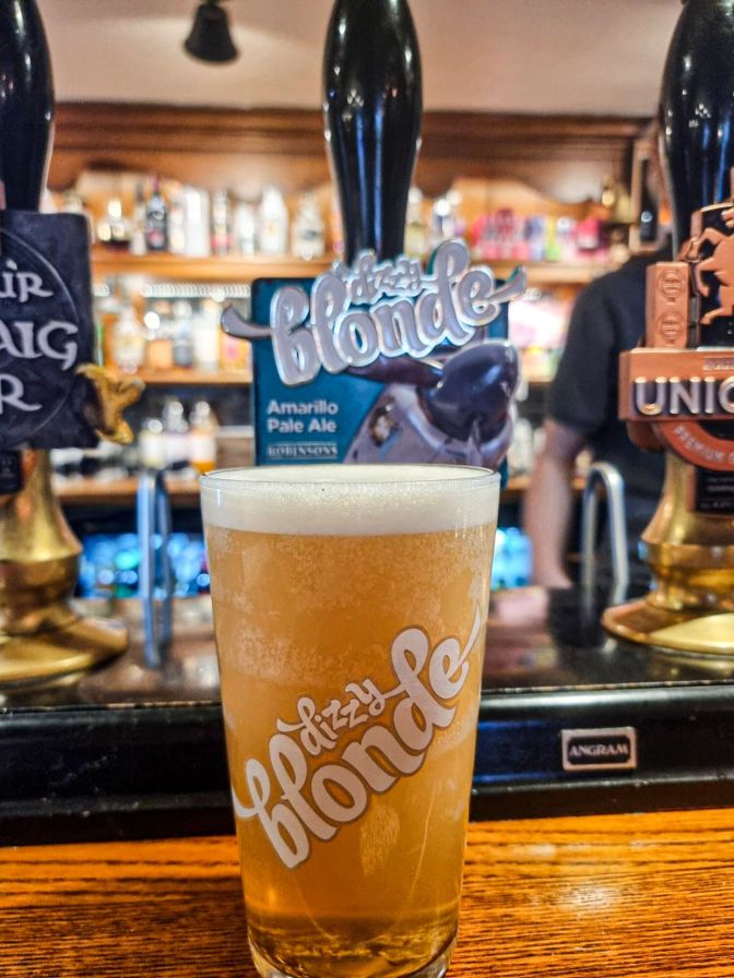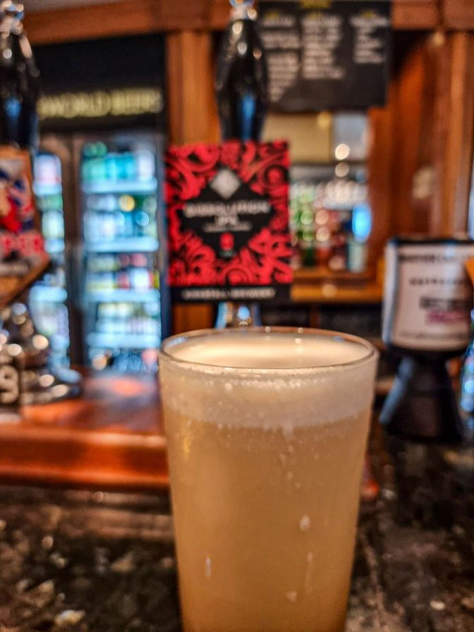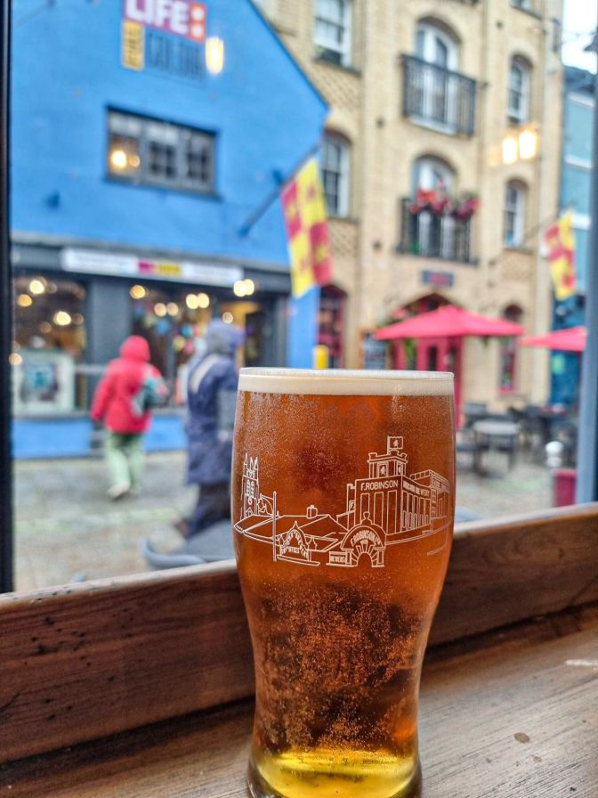 The Four Alls has more of a commercial pub/restaurant feel than the previous two pubs. It was lively with the lunch crowd and had a good selection of beers. I went with the Robinson’s Smooth bitter and took a spot by the window to people watch on the colorful Palace Street.