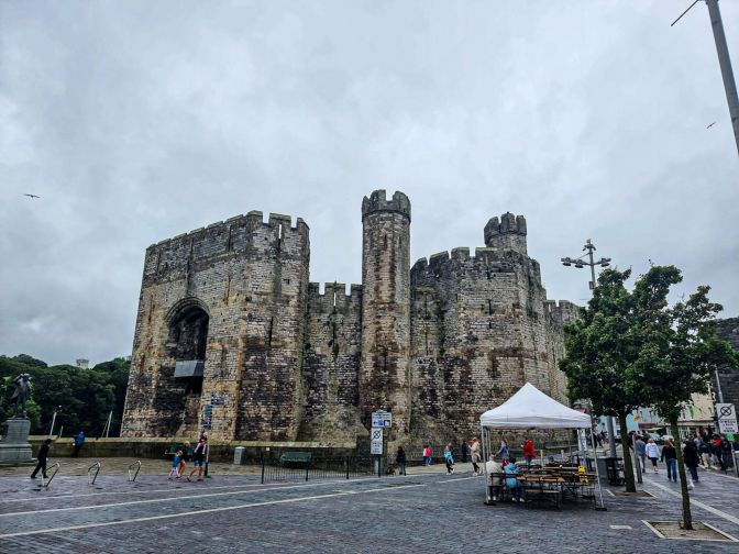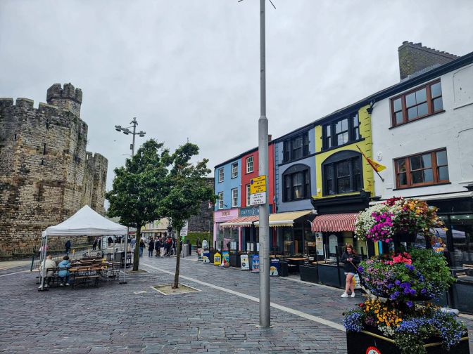 What better way to revive one’s hiking legs after three consecutive days of Snowdonia hiking than filling them with ale from the best watering places in Caernarfon. The day after reaching the top of Yr Wyddfa was typically gloomy, casting a pall over Castle Square whose colors struggled against the muting grey skies. The city was hushed for an August summer day. No noisy bus groups, only locals going about their daily lives. There wasn’t yet an energy on the streets, but the list of pubs looked promising. Before one gets to the drinking, one cannot possibly ignore the main feature of Castle Square, which is not, in fact, a pub.