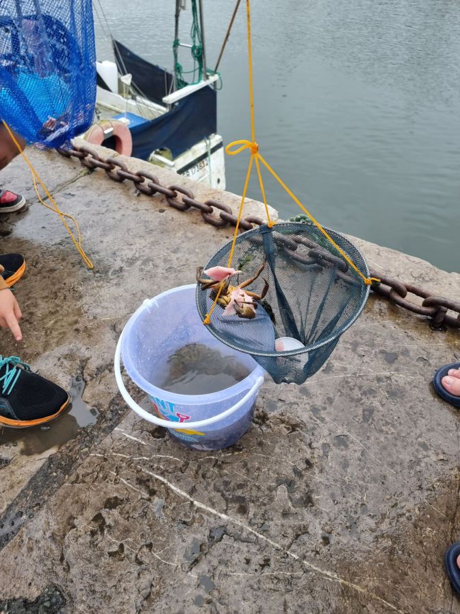 My stroll took me to the waterfront where the Afon Seiont river meets the Menai Straits which separates the Welsh mainland from Anglesey island. Here, I was introduced to the hobby of crab fishing. A wad of bacon is placed in a net and lowered into the water trying to lure the crustaceous critters. It is all about the contest for the biggest. At the end of the day, all the crabs are returned to the water.