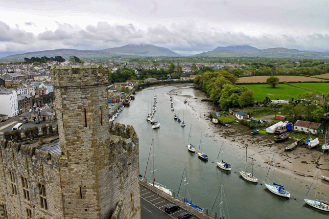 Caernarfon or Caernarvon or Carnarfon or Carnarvon has been spelled so many ways over the years that it does not require ale to make one already feel tipsy. But each variation means the same thing… Citadel (or Fort or Fortress) in Arfon. The city has Roman origins but it’s infamy rests in its fate as first a Norman outpost to subjugate the Welsh by William the Conqueror in 1066 and then an English outpost to subjugate the Welsh by Edward I in 1284.