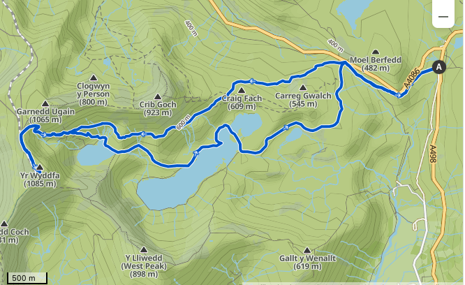 | Starting/Ending Point | Roadside Parking #807996 on the A498 before the turn to Pen-y-Pass coming from Beddgelert. Use Pay by Phone app. |