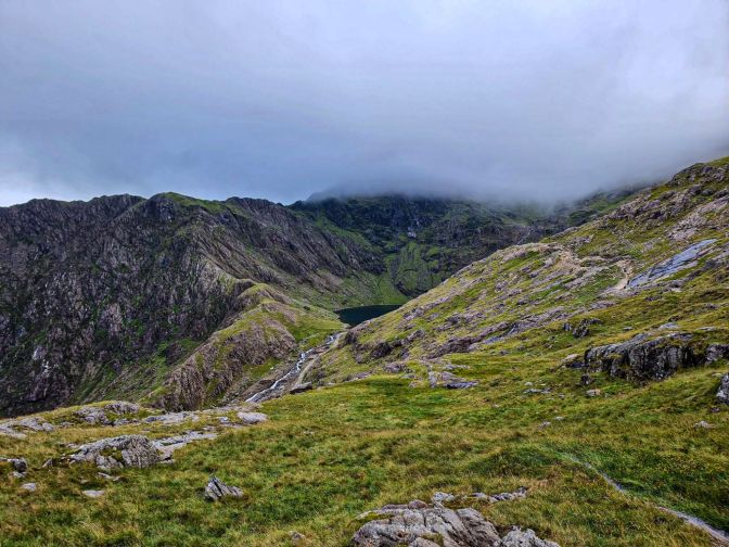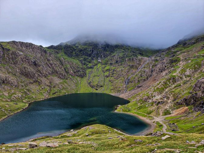 It was Friday, Day 5 and final hiking day of my August 2024 trip to Snowdonia. After previously ascending Yr Wyddfa, the highest mountain in Wales, via the Watkin Path earlier in the week and the Snowdon Ranger and Rhyd Dhu trails back in 2018, today would cover two more of the common routes to the summit, the Miner’s Track and the PyG Track. After being befuddled by the clouds on my first two ascents, I awoke that morning with a measured hope. As I looked out the window of my cottage, though, you could almost hear the collective sigh of several centuries of exasperated hill walkers waking up on similar mornings. The clouds formed a fractured tapestry across the sky, as rugged as the hills they were blanketing. There would be no summit views today, but the overhanging mist would play its role beckoning you into the mystique of Arthurian legend, like a well-seasoned Shakespearean actor. The hike would be as suitably breathtaking as it was frustrating.
