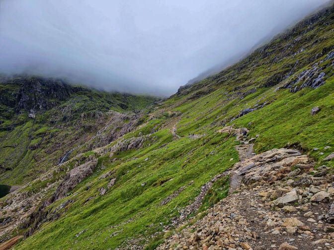 After meeting up with the Miner’s Track, the trail ascends into the legendary clouds. Yr Wyddfa (sometimes spelled Y Wyddfa) is believed to be short for Yr Wyddfa Fawr which means ‘great burial place’2. If this is true, it gives the clouds a more ethereal symbolism, as if entering sacred ground.