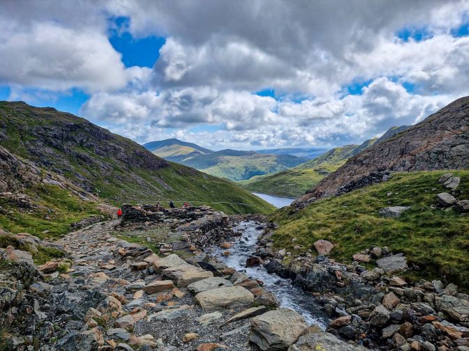 As you ascend, have a look to the west. This valley leads to the town of Llanberis where you can catch the steam train to the summit or follow the Llanberis route to the summit.