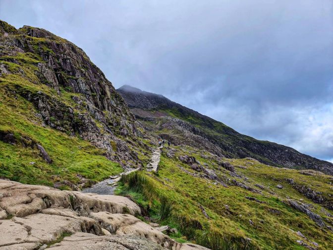 The real fun begins from the Pen-y-Pass parking lot. Taking the PyG Track begins what is known as the Snowdon Horseshoe. The initial ascent from the parking lot is the “First Nail in the Horseshoe.”1
