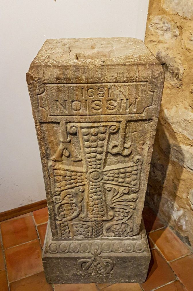 Up next is a pillar which originates from the Visigoths. For some reason, Saunière had it inscribed with “Mission 1891”, the year he supposedly experienced his sudden change in fortunes, but it was inscribed in the wrong direction and for many years the pillar stood upside down. This was originally the pillar in which the conspiracy theorists thought Saunière found the secret documents. However, there was no hollow compartment inside it, only a small spot hollowed out to support the pillar when it was situated upside down.