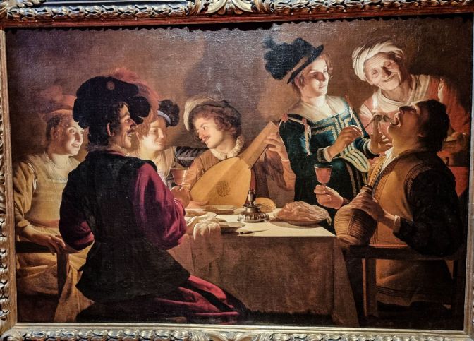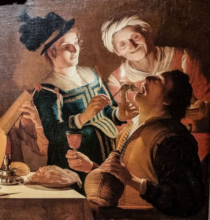 If there is one example why I would take a Gerrit van Honthorst over a Da Vinci any day, it is this painting. Screw dignity and temperance. Not only do we have a scene of a group of people enjoying themselves with wine, but one of them doesn’t want to interrupt their fun to go see a dentist. So he has a tooth extracted right there at the table without so much as spilling his glass. If Savonarola had a crypt with a mail slot, I would enjoy dropping a postcard of this one into it.