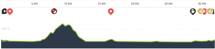 You aren’t going to get to Pilsudski’s Mound without a serious climb. Komoot chose the most direct route which is taking the road up to the zoo. About half way up, I pulled over to the side of the road as I was gassed. It just so happens that this spot was the entrance to a trail network leading into the forest surrounding the mound. Looking at the climb ahead of me, I decided to take my chances with the trail despite the fact that I was using a city-style bike. The trail looked wide and in good condition and at least as far as I could see, running level. That would be the little notch you see during the ascent in the above elevation graphic.