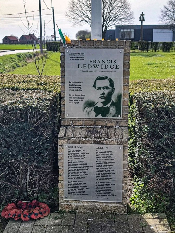 Ledwidge was an Irish poet who was killed in action here on this spot during the opening salvo of the Battle of Passchendaele called the Battle of Pilckem Ridge in July 1917. His childhood home in Slane, County Meath, Ireland is today a museum dedicated to his memory. The poem at the beginning of this blog post gives a heart-wrenching look at the mind of someone coming to terms with dying in battle, which would come for him 7 months later.