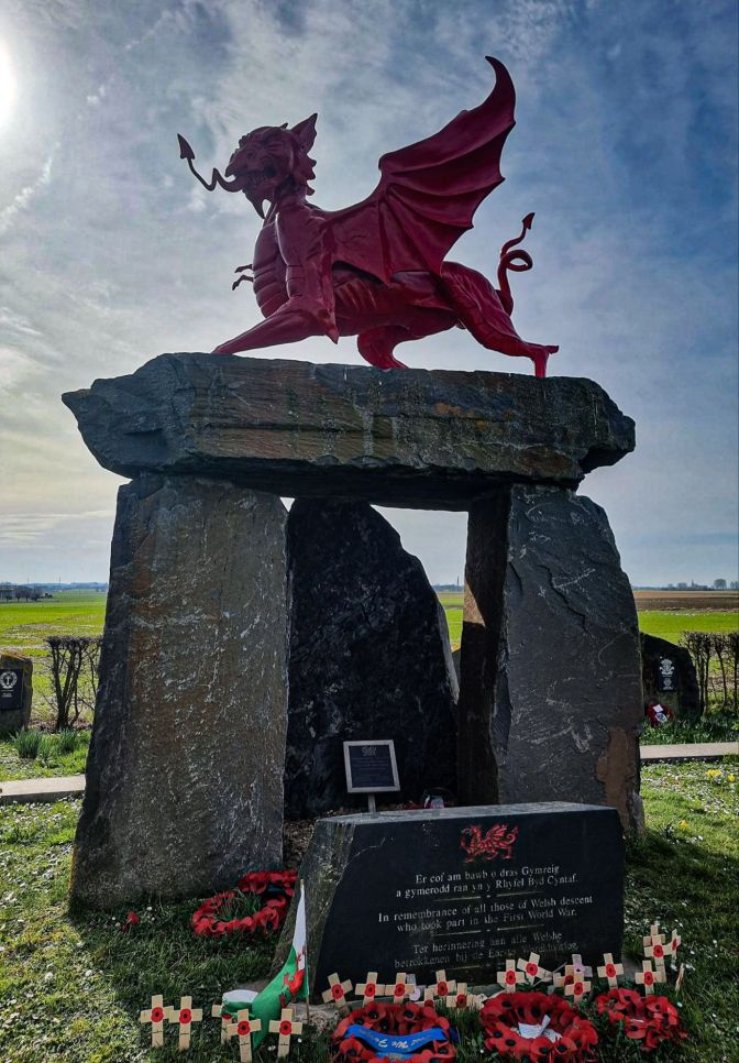 This memorial stands for all the Welsh who fought in the war. The location is along the ridge where the Battle of Pilckem Ridge took place. Nearby is a memorial to a Welsh poet who was killed near this spot.