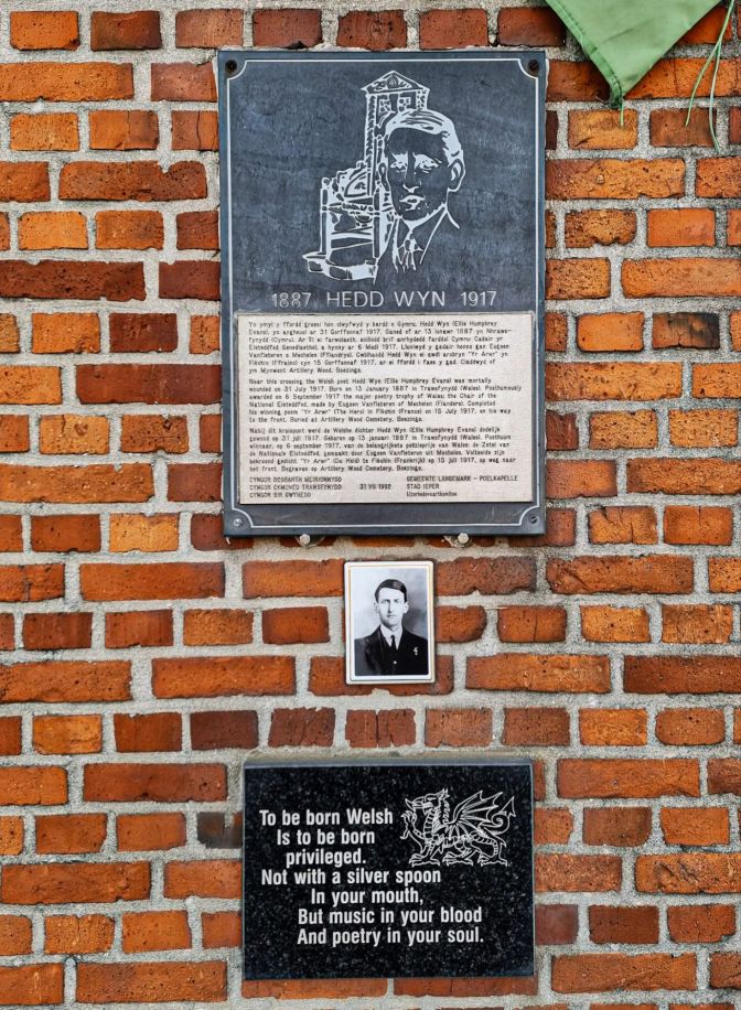 Both Hedd Wyn and Francis Ledwidge lost their lives on the same day, July 31, 1917, during the same battle. Wyn is considered one of Wales’ most beloved poets. He was awarded a bard’s chair posthumously six weeks after his death. The chair was designed by Eugene Vanfleteren of Mechelen, Belgium. A biopic was also made about him in 1992. Wyn wrote his poetry in Welsh and perhaps his most famous work is called Rhyfel which means War. A translation of the poem can be found here.