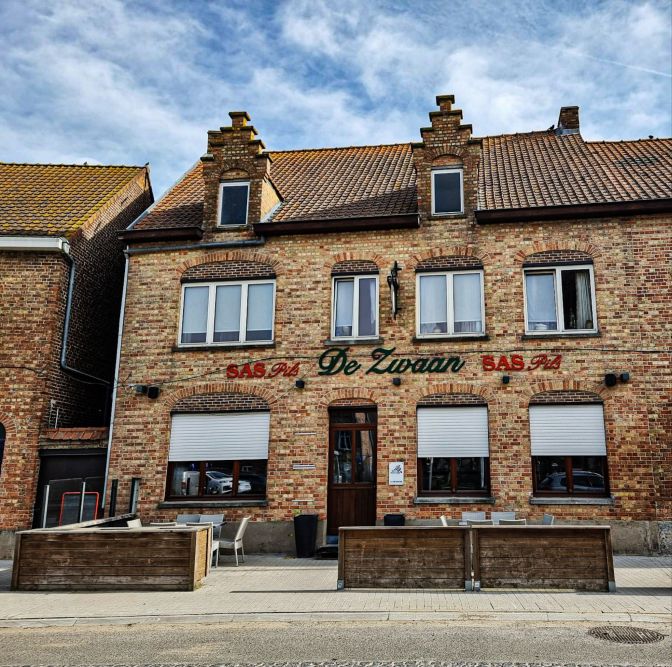 This quiet village marks the pivot point of the ride as it turns east from here. It has all the earmarks of a small West Flanders village. The customary look of its spire, war memorial, and amber-bricked houses including the De Zwaan pub which was still slumbering during my morning visit. There is no visitor center at the brewery. It brews the Sas Pils served at many of the region’s pubs.