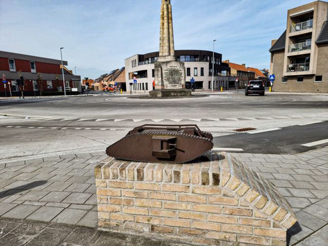At the end of WWI, a British MKIV tank was left behind in Poelkapelle and became a local landmark. A memorial was erected here to commemorate the British tank battalions that helped liberate Poelkapelle. The real tank was removed for restoration and replaced with a replica.