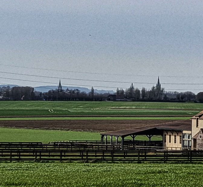 The ride is not known for its dramatic scenery but there are a few spots along different backroads where you catch a glimpse of a charming West Flanders village skyline.