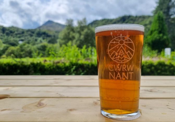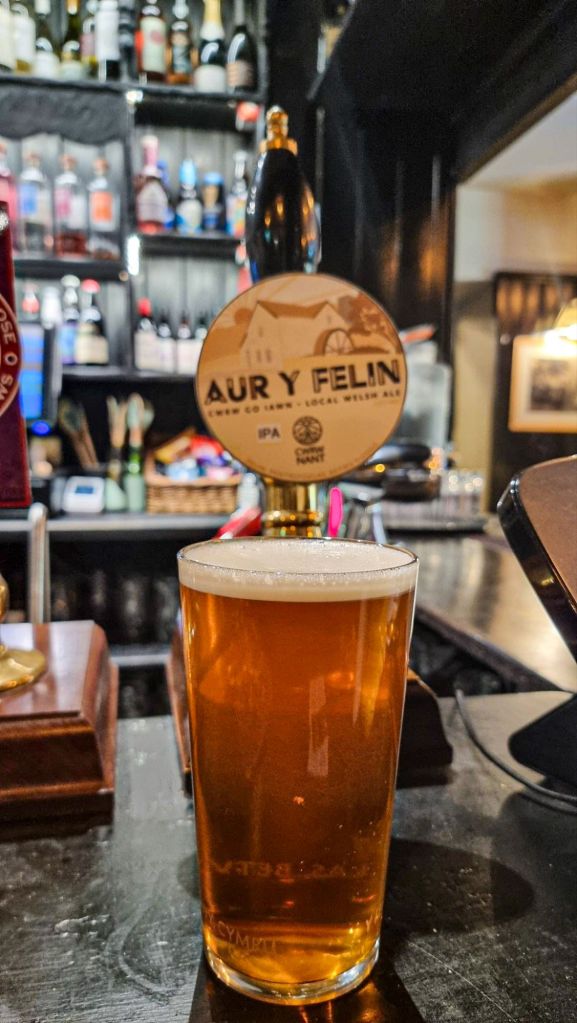 At the end of the hike, it was time for a refreshment at the historic Tyn-y-Coed Inn, a former coaching inn. The Aur-y-Felin ale is brewed by Cwrw Nant in the nearby village of Betws-y Coed. I grabbed an outdoor table and sipped the ale during the quiet of the early afternoon. The peak in the distance was not Moel Siabod, but a mere bump on the way giving the false impression of lofty heights from my vantage point.
