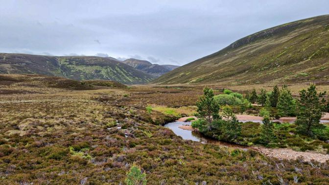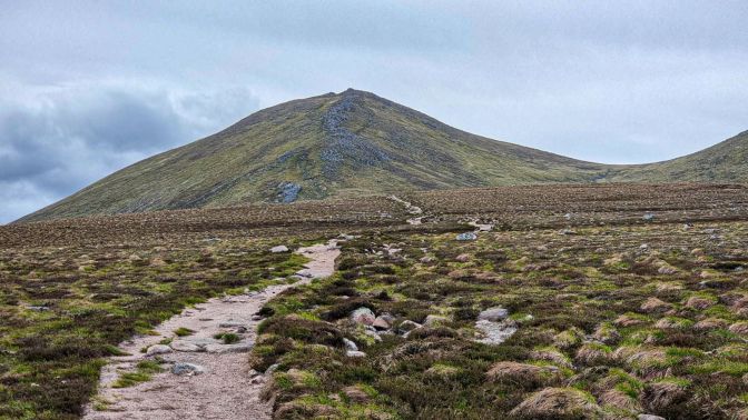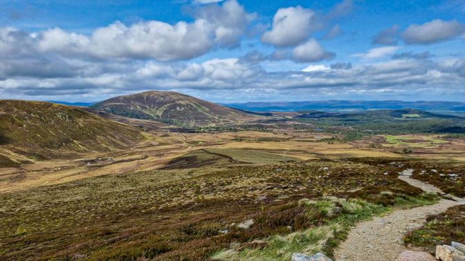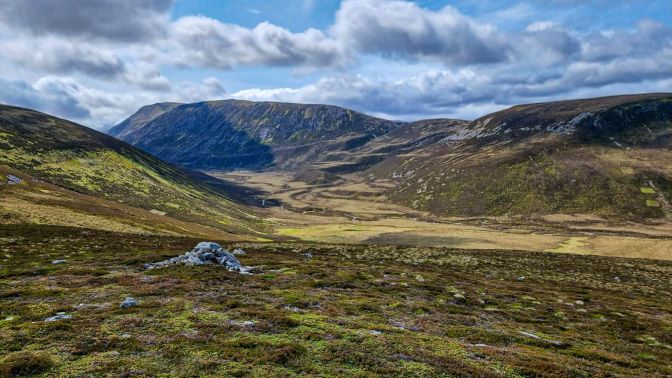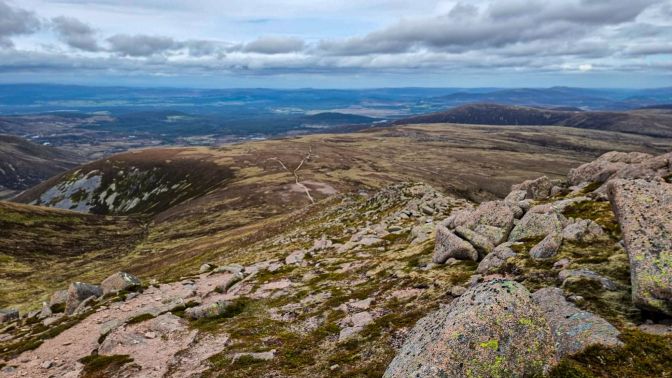 Bynack More, meaning Big Cup1, is a munro sitting on the opposite side of the Cairn Gorm range coming from the city of Aviemore. Unlike many munros, it is achievable in a roundtrip day hike, but its remote location makes any kind of loop hike all but unfeasible except to the most hardcore hiker. Thus, it is one of my own rare personal experiences doing a purely up-and-back hike. This is by no means a detraction as the vast scenery on this hike benefits from capturing it from both directions.