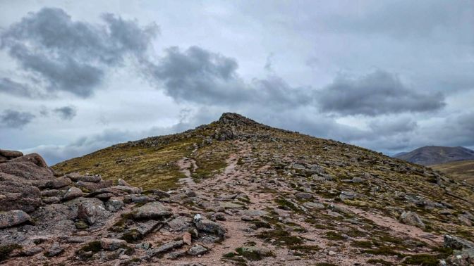 One of the impressive characteristics of this hike is how clear the sightlines are of the route from a distance. This really messes with your judgment of geometry. As I approached Bynack More, I found myself initially unimpressed by the level of difficulty it seemed to present. It’s smooth face with a five o’clock shadow of rocks made it look like a quick jaunt up the side of a hill. I could not have been more wrong.