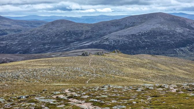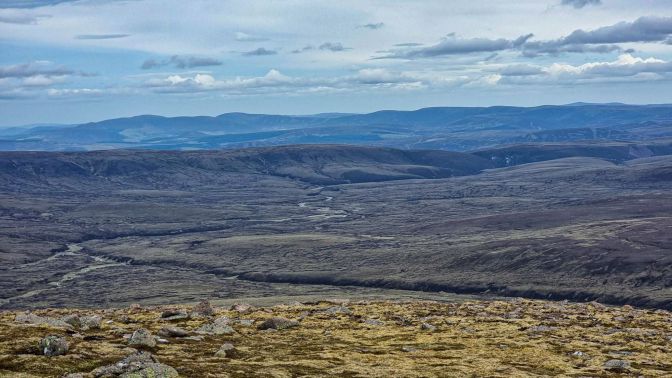 During the descent, I passed the only hiker I encountered east of the River Nethy. Back on the plateau, it was a return to sheer solitude.