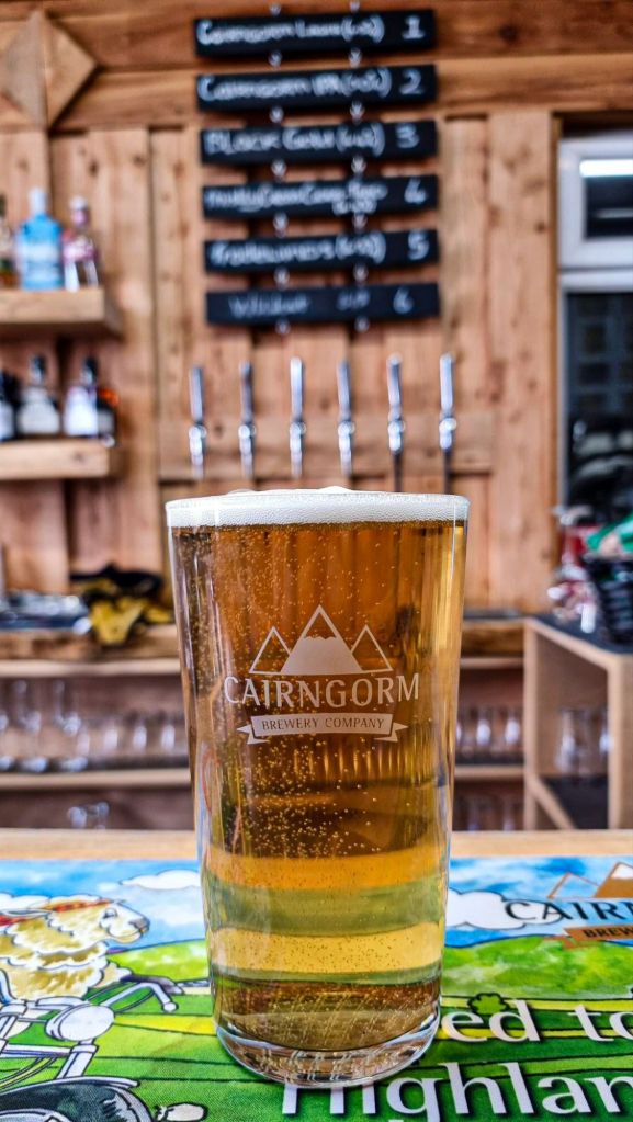 The celebratory beer would be back in Aviemore at the local brewery. Cairngorm Brewing has several varieties of traditional ales in the 3-5% alcohol range. Often a craft brewery will at least dabble with one type of beer on the alcohol level of a DIPA or Belgian Triple. However, there was nothing of the sort. The proprieter scoffed when I asked. “When we go out to a pub in the UK”, he explained, “we like to spend the entire evening drinking. You cannot do that when you are drinking those high alcohol beers.” He had an argument. In the meantime, the Highland Gold was a refreshing post-hike pale ale.