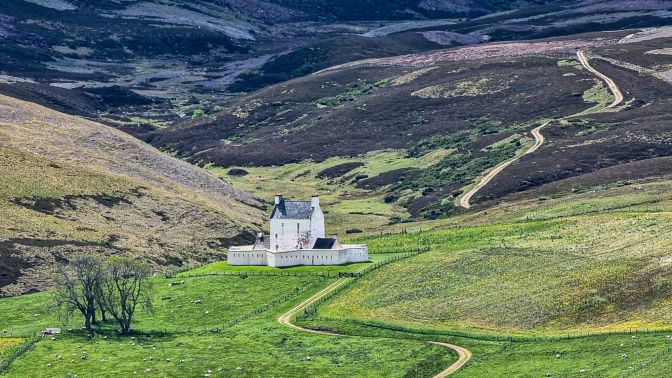 Proceeding past Lecht, it is good to note that this is the second highest road in Scotland at well over 2000 ft. in elevation. This becomes quite evident as you start to descend and reach the Corgarff viewpoint.
