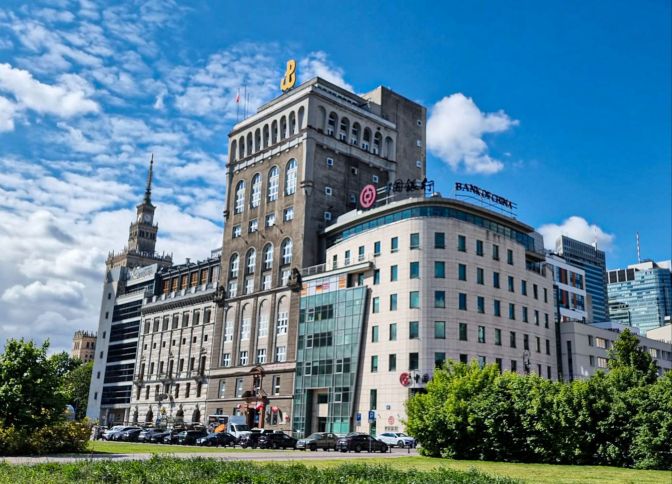Starting from Stare Miasto, the ride heads south past the Warsaw Ghetto Uprising Museum building mentioned in my Warsaw North post. This building also houses the craft beer bar Piętro Niżej. The skies were blue, but the temperature peaked at around 11C (52F) which seemed ridiculous for May.
