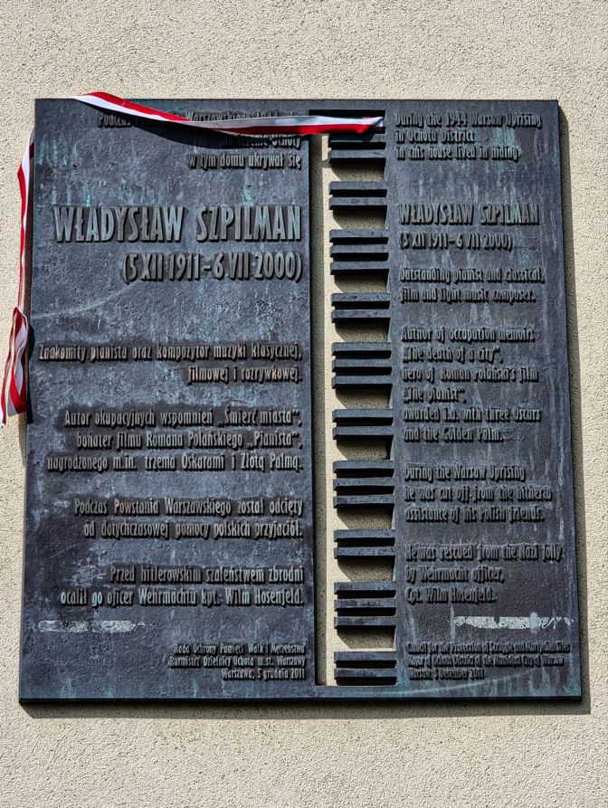 Aleja Niepodległości 223 marks the location where Szpilman played Chopin for the German officer.