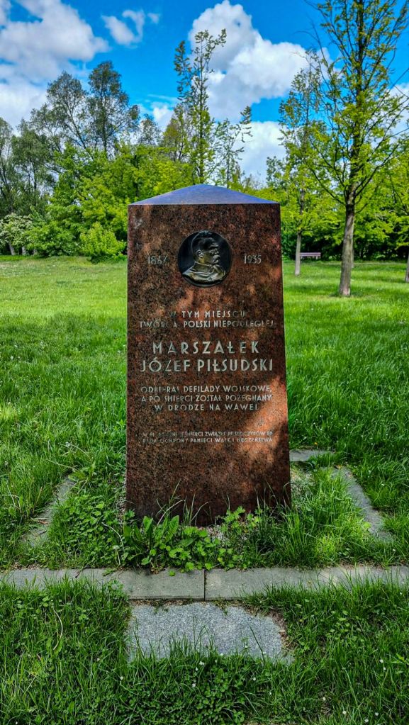 The ride then passes through Pole Mokotowskie park. In the park is a memorial to Jozef Pilsudski marking the route of his funeral procession through the park in 1935. I have discussed Pilsudki at some length in my Warsaw North post and the following blog post where I rode a bike to Pilsudski’s mound outside of Krakow.