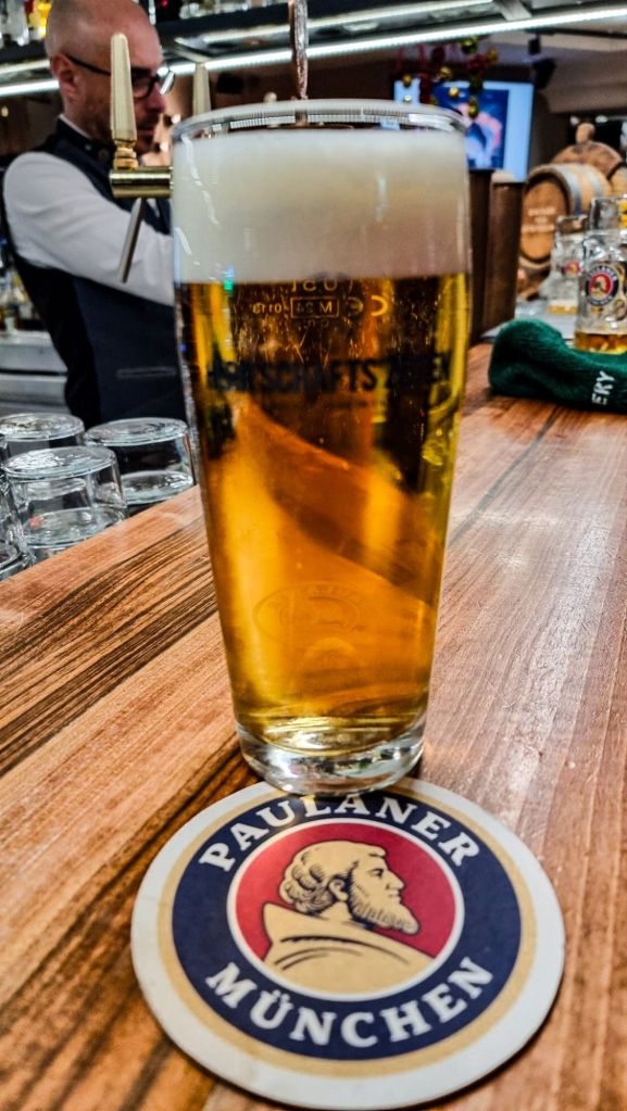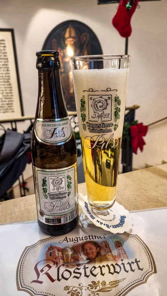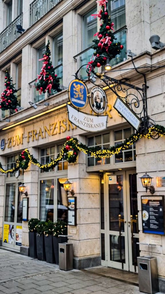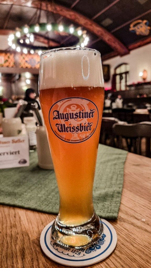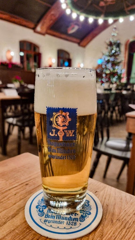 Regarding Oktoberfest, I have gone into great depths about my experiences at a couple of them. In those epic posts, I also recount my excursions with my friends touring several beer halls around Munich. However, this past Christmas holiday (Christmas 2025), I felt the urge to revisit Munich and exchange the Oktoberfest backdrop with the Christkindlmarkt backdrop. The goal was to soak up the beer hall environment in a little more reflective manner than with a boisterous group of beer-guzzling cronies. My past visits didn’t allow me to properly catalog and soak in all of the places I had been. Not to mention, there were several places which I hadn’t yet visited. When I say places, I am referring to the great establishments of the German beer drinking pantheon: the Bierhalle, Biergarten, Wirtshaus, Keller, Stuben, and Brauhaus. For the latter, you can confidently pronounce it brow with full gusto.