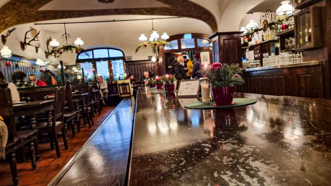 This is my prime spot in the city to enjoy Hacker Pschorr beer with some good food. I had dinner here on my first evening in December 2025, and during one of my Oktoberfest weekends, this was also the location of our group’s first dinner. It is situated at the southwest end of the Viktaulienmarkt, making it a place difficult to get to and from without getting interrupted by all of the tempting delights of the Viktaulienmarkt. I recommend making reservations.