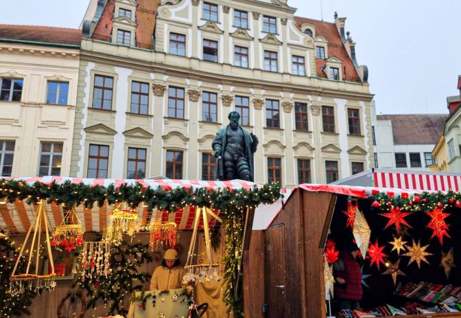 The Augsburg Christkindlmarkt occupies a handful of the city’s historic squares. One of them is the Fuggerplatz, where Jakob Fugger finds himself surrounded by a network of kiosks. Everywhere you look in Augsburg, you find buildings of Gothic, Renaissance, and Rococo architecture which make an elegant backdrop to the Christkindlmarkt. The savory aroma of grilling bratwurst hung in the air like an umami incense. I noticed immediately that the products being sold in the Augsburg Christkindlmarkt felt more authentic to the Christmas Spirit of handicraft than the wares in Munich.