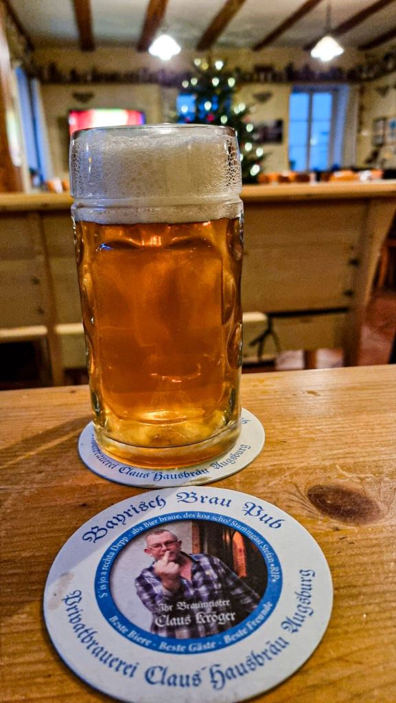 1. My wife and I were in Augsburg as part of our self-guided eight city Christmas Market tour at the end of November. Alas! Unlike the 2023 German Beer City tour I took with my neighbor, beer was at best a tertiary priority on this trip. Christmas markets and Gluhwein were of course the highest priority followed by churches/cathedrals (we saw both that you noted above), with me trying to squeeze in beers when and where I could. We had dinner at the Ratskeller (though the construction around the platz on the eastside of the building confused us as to where we could enter) and I had several Riegele beers there. I also had the opportunity to pick up a Lauterbacher Helles Brotzeit Bier (I found the label interesting) at the Rewe near the Rathaus.