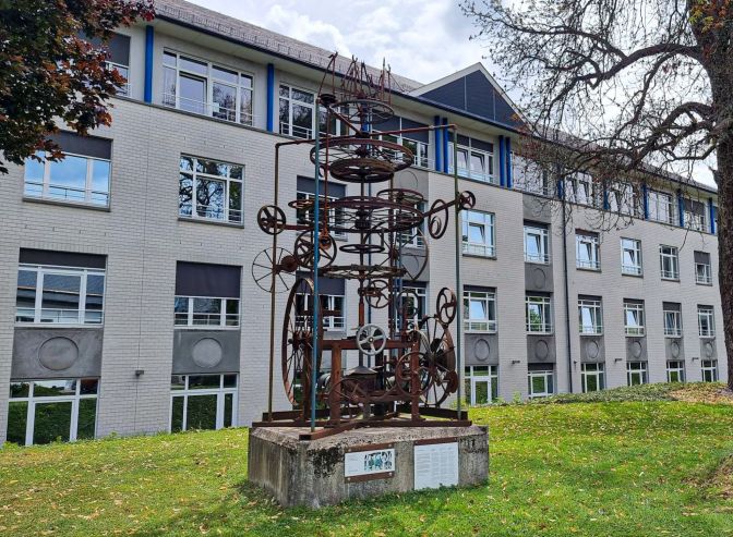 The Klinik Sankt-Josef, today a hospital, was a convent prior to December 1944. It became an American HQ and was destroyed in the bombing. Next to the hospital are several interesting information boards with photos showing the before and after of the convent. One of them shows the nuns posing with several German officers.