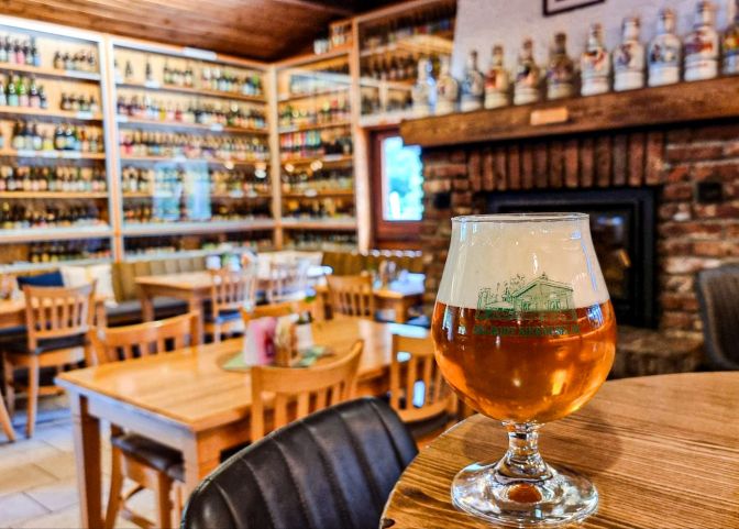 The restaurant is named as such mainly for the collection of beer bottles that line the walls of the restaurant. It does have house beers brewed by the renowned Brouwerij van Steenberge, makers of Piraat, Gulden Draak, and Augustijn, including both a blond and dubbel, and an impressive array of both local and national Belgian beers.
